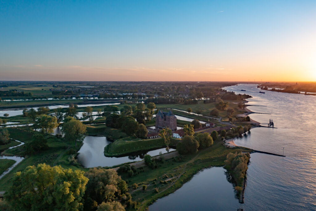 In order to make this potential more visible and to utilise it, we have developed a Masterplan for the entire area with various experts from diverse fields, such as architects, landscape architects and engineers. We have proceeded carefully and have taken the ambitions, research, policies and visions of our partners over the past years as a starting point in order to arrive at an integrated future-proof plan. We are strengthening and developing the fortress and Munnikenland as a total experience of cultural history and dynamic nature reserve. With this Masterplan we are sketching a spatial final image about landscape, buildings and programming for the future. It also forms the basis for further agreements with our direct partners, to work together towards a flourishing future for Slot Loevestein and Munnikenland as a national icon in this globally unique river landscape and world heritage.
